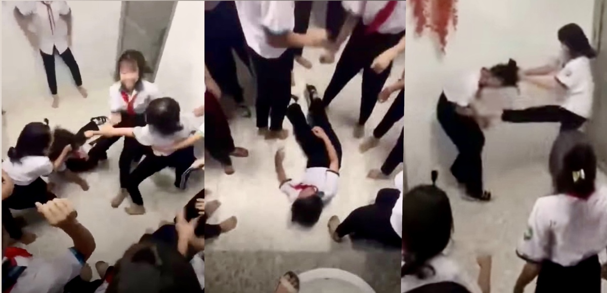 Sự việc chỉ dừng lại khi một giáo viên xuất hiện, quát lớn yêu cầu nhóm học sinh dừng tay. Đoạn clip nhanh chóng lan truyền trên mạng xã hội, gây bức xúc dư luận.