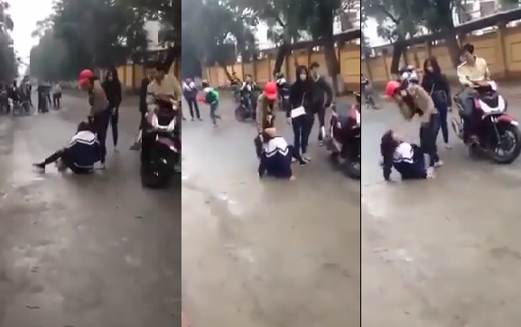 Ngày 12/2, mạng xã hội xuất hiện một đoạn clip dài hơn 2 phút ghi lại cảnh một nữ cấp 3 sinh bị đánh đập dã man. Trong clip, cô gái đội mũ bảo hiểm màu đỏ liên tục giật tóc, đấm nhiều lần vào người nữ sinh rồi buông lời thách thức, đe dọa.