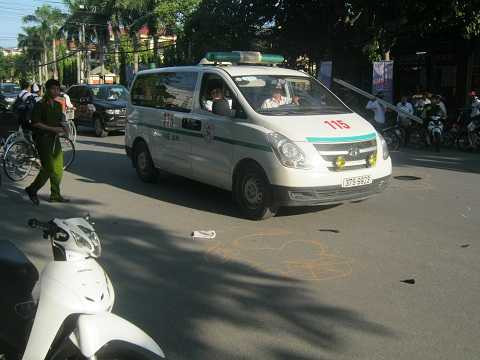 Lúc này nạn nhân mới được đưa lên ô tô đi cấp cứu. Kể từ lúc nạn nhân được đưa đi khỏi hiện trường, khoảng 3 phút sau thì xe cứu thương mới hú còi inh ỏi chạy đến.