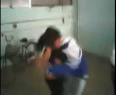 Đoạn clip mới được đưa lên mạng có độ dài hơn 1 phút ghi lại cảnh 2 nữ sinh vật lộn, giật tóc, đấm đá vào nhau tại khu vực nhà xe của trường. Hai nữ sinh này không ai kém ai, liên tục tát vào mặt đối phương và díu đối phương vào phía góc tường.