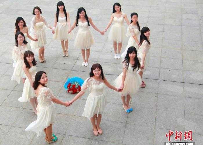 Các nữ sinh tại một trường đại học ở tỉnh An Huy, Trung Quốc, diện bộ váy trắng duyên dáng trong bộ ảnh mừng ngày tốt nghiệp.