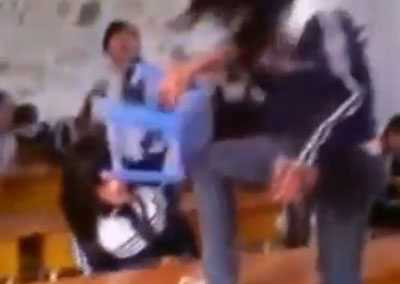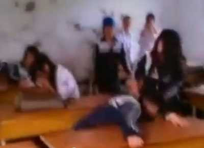 Không dừng ở đó, nữ sinh nào tiếp tục lao tới giật tóc, tát và đánh bạn. Chỉ đến khi “hả hê” cơn giận và cô bạn cùng lớp bị chiếc bàn đổ vào người thì nữ sinh này mới chịu dừng tay.