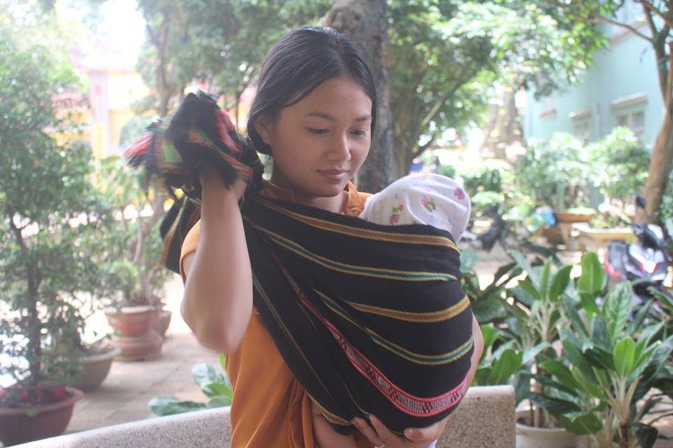 H’Đanila địu con đến điểm thi tại Gia Lai.