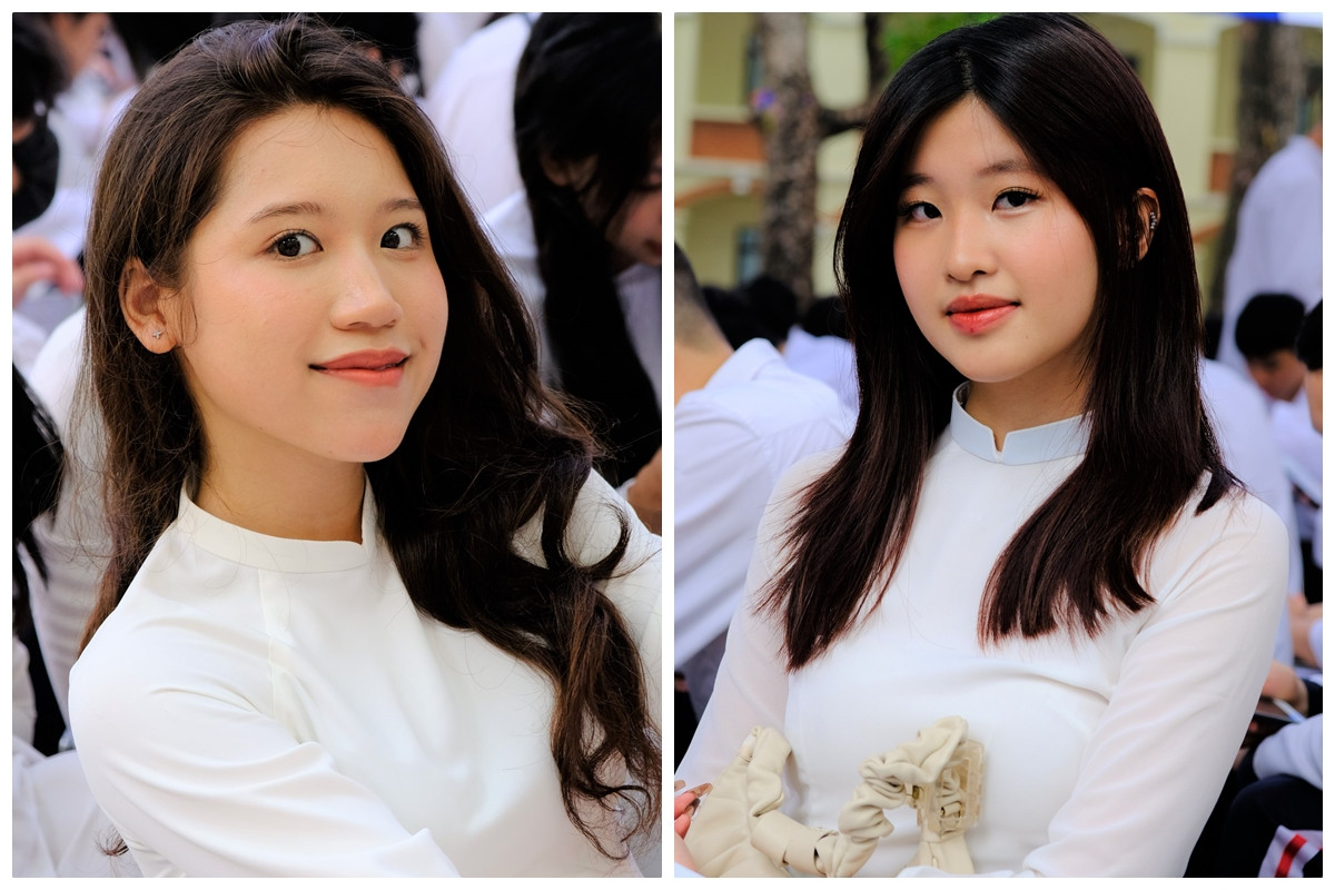 Nữ sinh trường THPT Phan Đình Phùng đẹp cuốn hút với tà áo dài trắng tinh khôi trong ngày lễ bế giảng.