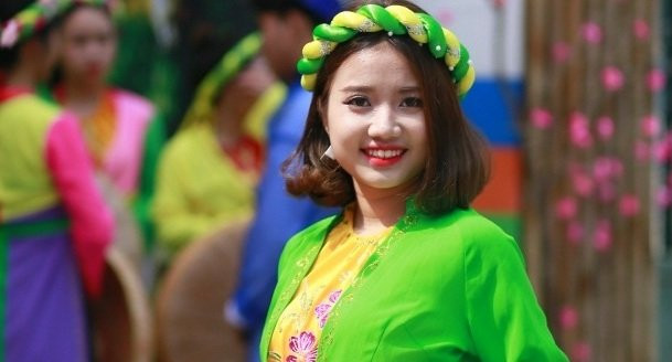 Với chủ đề “Về miền quan họ”, tham gia chương trình, các bạn sinh viên được chọn cho mình những bộ trang phục đậm sắc màu Kinh Bắc để hòa mình vào ngày lễ hội.