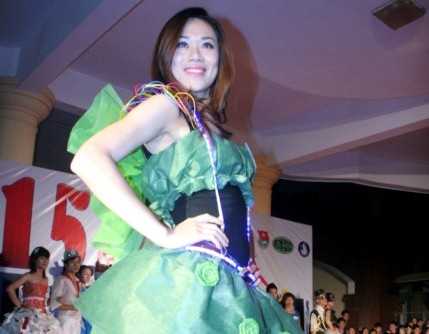 Chỉ từ những đồ bỏ đi như sách báo cũ, giấy nilon, vỏ lon nước ngọt, hay rau quả nhưng qua bàn tay sáng tạo độc đáo của các sinh viên ĐH Kinh doanh và Công nghệ đã trở thành những bộ trang phục độc đáo, lạ mắt nhưng vẫn thể hiện được đặc trưng của từng khoa ngành trong trường.