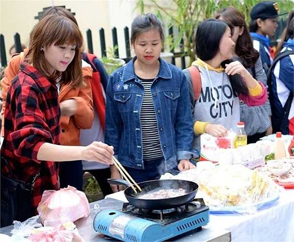 Bên cạnh các tiết mục văn nghệ hấp dẫn, các bạn sinh viên còn trổ tài nấu nướng ở phần thi ẩm thực để mời các thầy cô thưởng thức những món ăn truyền thống của dân tộc.