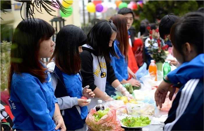 Các bạn sinh viên làm các món ăn truyền thống để tham gia trao đổi tại hội trại
