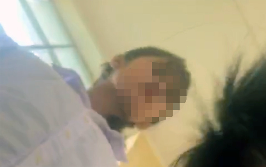 G.H có hành vi đánh bạn cùng lớp ngay tại trường. (Ảnh cắt từ clip)