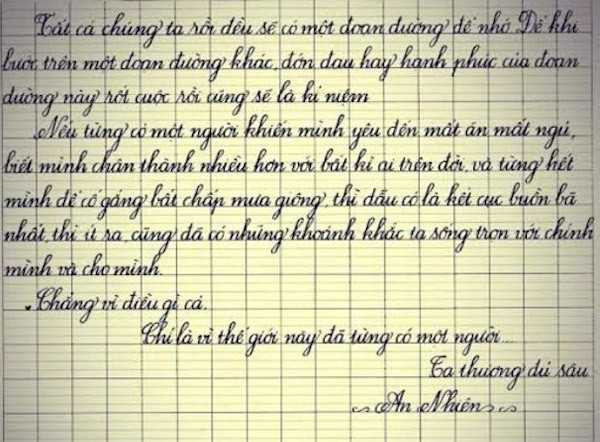 | Nét chữ đẹp đến mê mẩn của Ngân. |
