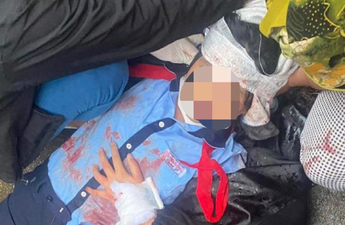 Cú đập mạnh khiến em N. bị chảy máu, chấn thương nặng và được người dân đưa đi cấp cứu tại Bệnh viện Trung ương Huế.