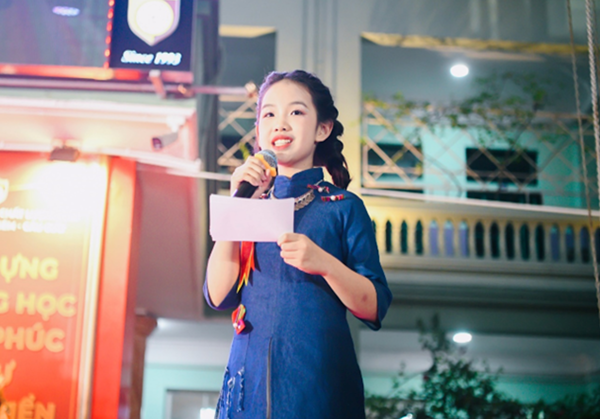 Tại Đại hội học sinh giỏi khối THCS của trường THCS và THPT Nguyễn Bỉnh Khiêm (Cầu Giấy, Hà Nội) diễn ra mới đây, Dương Tuệ Mẫn, học sinh lớp 6D0 khiến mọi người ngạc nhiên về tài năng thời trang.