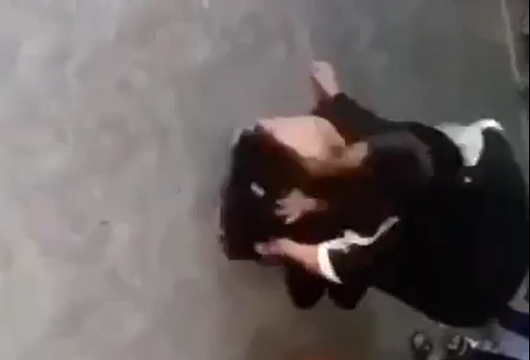 Điều đáng nói, trong khi hai nữ sinh đang đánh nhau thì có nhiều học sinh và một phụ nữ lớn tuổi khác không can ngăn mà còn dùng điện thoại quay hình.