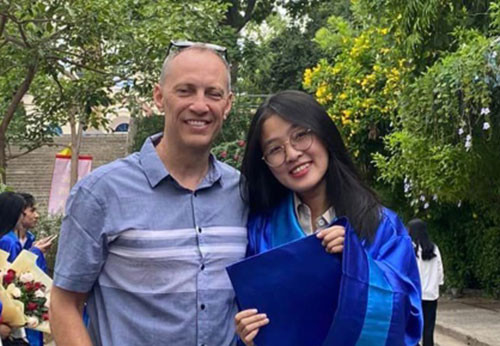Vị khách bất ngờ có mặt trong buổi lễ tốt nghiệp của Ngọc Thuỳ. (Ảnh: NVCC)