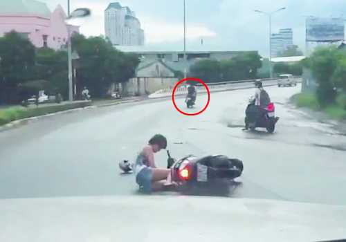 Trên đường từ trường về nhà trọ, nữ sinh 20 tuổi bị 2 tên cướp áp sát giật chiếc túi. Không làm chủ được tay lái, nạn nhân ngã xuống đường, bất tỉnh.