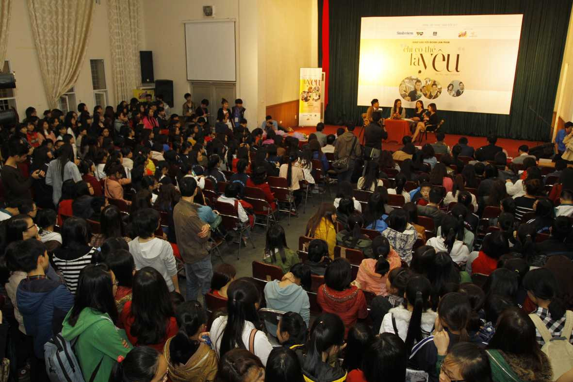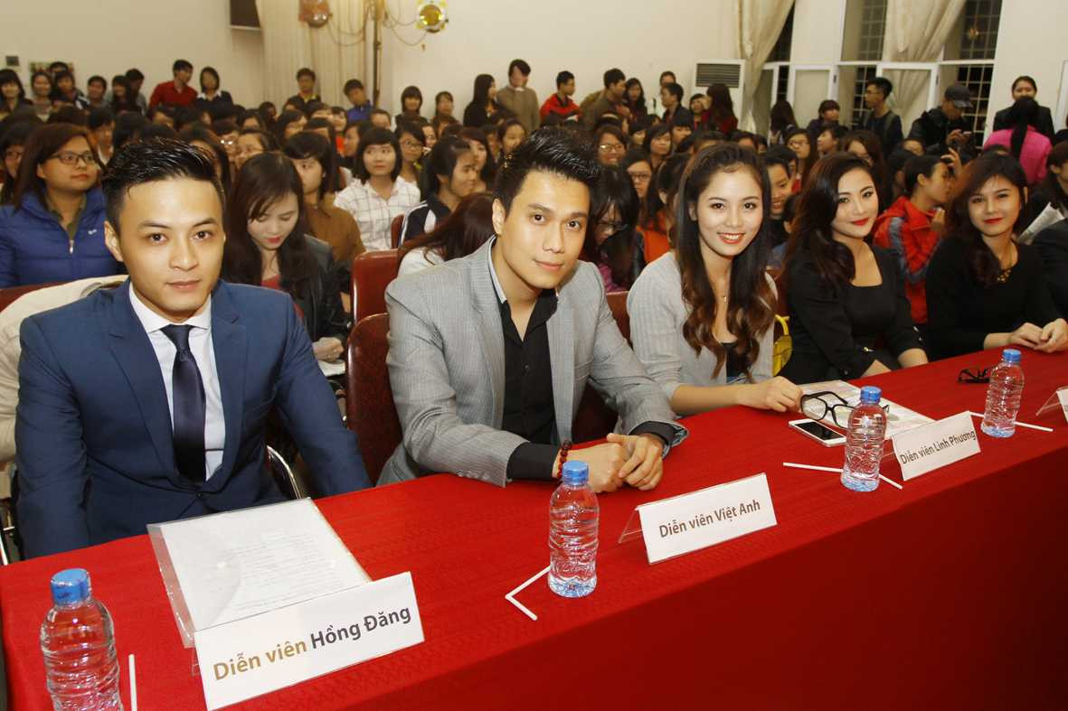 Dàn diễn viên trẻ tài năng trong phim "Chỉ có thể là yêu" được các bạn sinh viên ĐH Ngoại ngữ (ĐHQGHN) rất hâm mộ