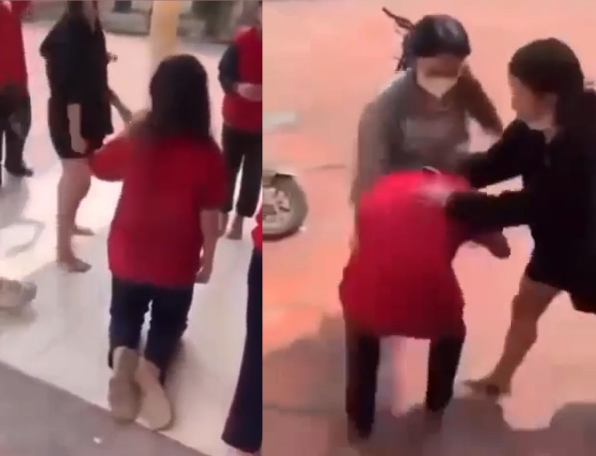 Đoạn clip lan truyền trên mạng ghi lại cảnh một nữ sinh mặc áo đồng phục cấp 2 bị nhóm nam nữ vây kín, liên tục chửi bới, lôi áo, giật tóc, thậm chí đạp vào đầu nhiều lần. Mặc cho nữ sinh này quỳ gối van xin "em xin lỗi hai chị, lần sau em không thế nữa...", vẫn không ai can thiệp, giúp đỡ.