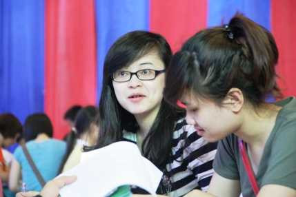 | Nhiều nữ sinh đã không ngần ngại điền vào lá đơn xin ứng tuyển vào các vị trí tuyển dụng của các doanh nghiệp |
