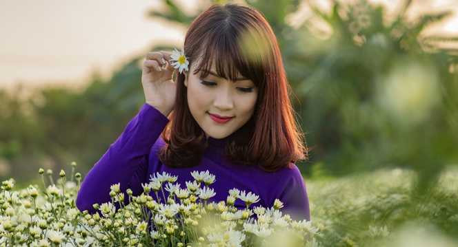 Sự e ấp, dịu dàng của cô gái bên cúc họa mi tạo nên vẻ đẹp say lòng người.