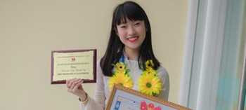 Cô càng được hâm mộ sau khi bảng thành tích học tập khủng được tiết lộ: Giải ba học sinh giỏi môn Tiếng Anh cấp quốc gia, thuộc diện được xét tuyển thẳng vào đại học, được Đại học FPT cấp học bổng 170 triệu đồng.