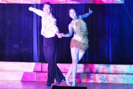 Trong số các tiết mục tài năng tham gia cuộc thi, phần nhảy dancesport của Đoàn Ngọc Bình cùng nhóm nhảy HDC mở đầu đêm thi đã khiến hội trường “nóng” hơn bao giờ hết.
