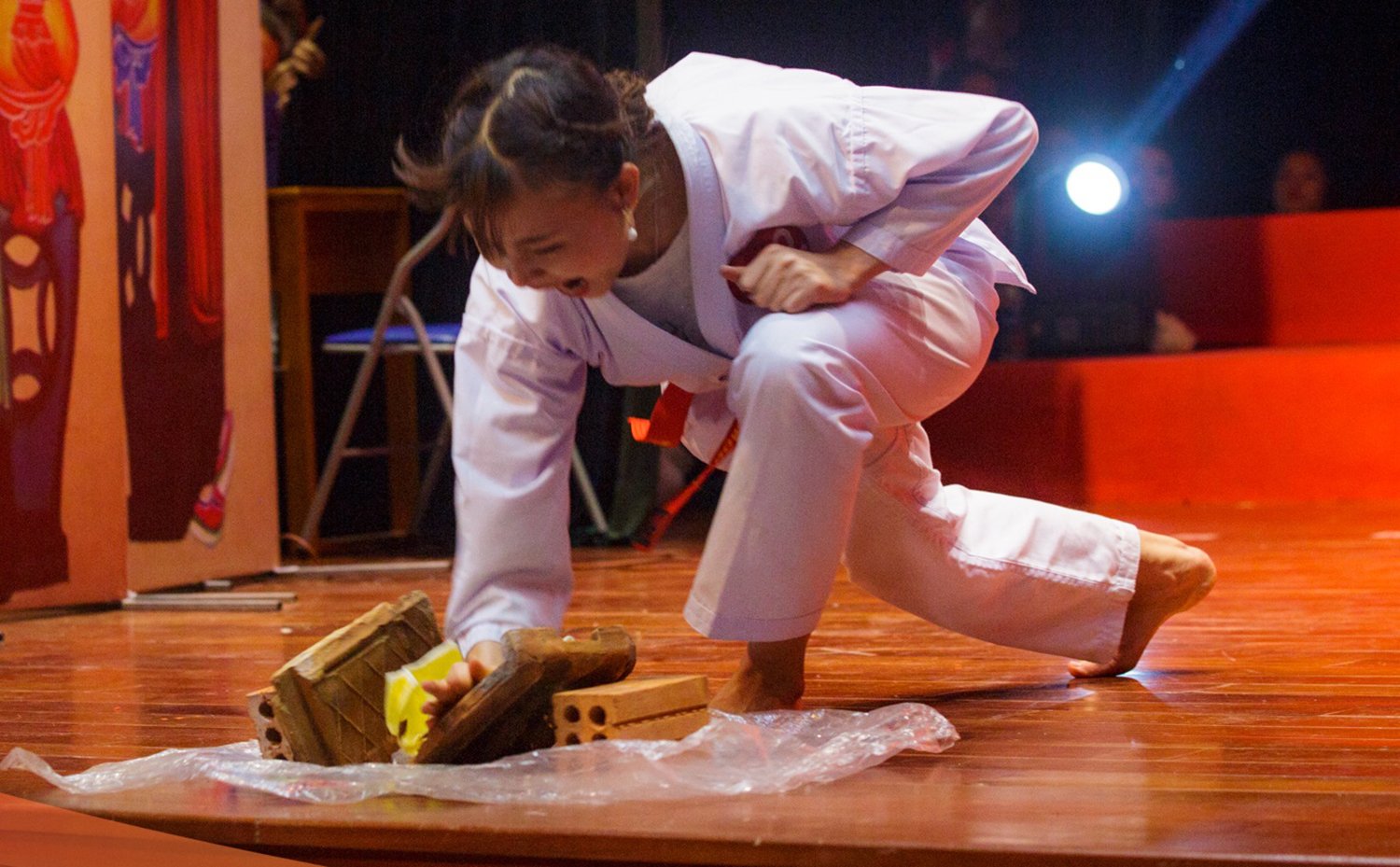 Nữ sinh xinh đẹp dùng tay đạp ngói trong màn trình diễn võ thuật.