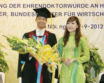 Em mới được biết về sự kiện trường ĐH Kinh tế Quốc dân sẽ trao bằng Tiến sĩ danh dự cho Bộ trưởng Đức gốc Việt Philipp Rösler cách đây 1 tuần và không nghĩ rằng mình sẽ có vinh dự được tham dự vào sự kiện trọng đại này.