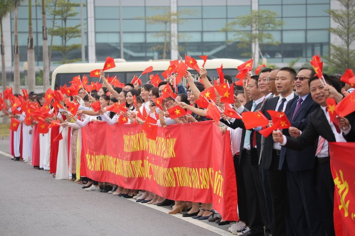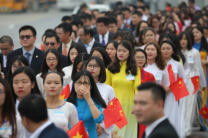 Hơn 11h trưa12/11, chuyên cơ chở Tổng bí thư, Chủ tịch Trung Quốc Tập Cận Bình đã đáp xuống sân bay Nội Bài, Hà Nội. Ra đón ông Tập Cận Bình có rất đông nhà lãnh đạo Việt Nam, Trung Quốc cùng đông đảo sinh viên hai nước.