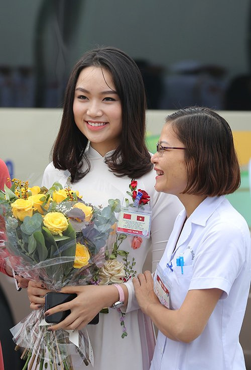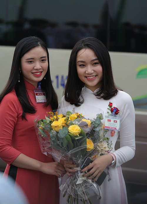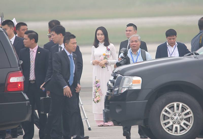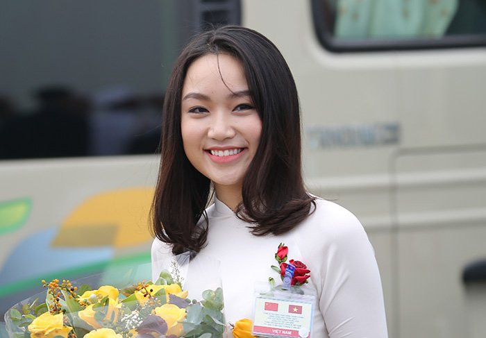 Phạm Thu Trà (1998) đại diện cho sinh viên Việt Nam được vinh dự ra sân bay tặng hoa cho Tổng bí thư, Chủ tịch Tập Cận Bình tại sân bay Nội Bài.