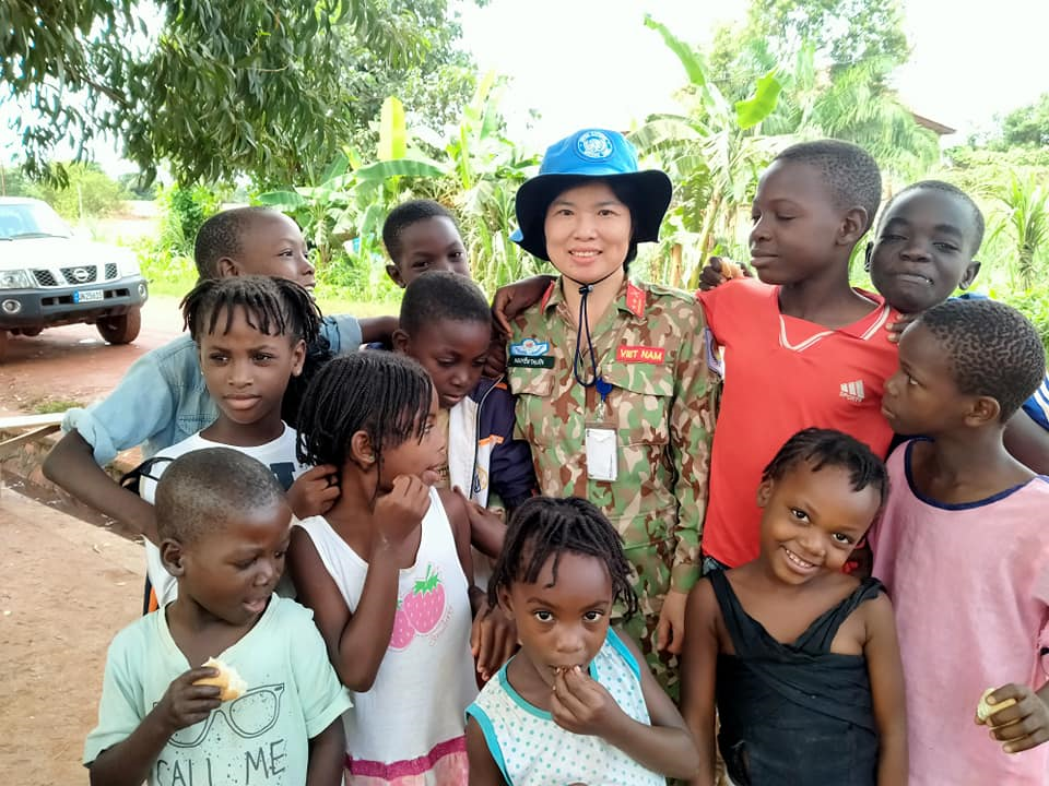 Người dân, đặc biệt các em nhỏ Trung Phi rất yêu mến nữ chiến sỹ Việt Nam. (Ảnh: Facebook nhân vật)