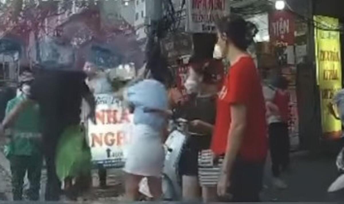 Sau va chạm, người phụ nữ đi xe máy điện liên tục chửi bới và gọi thêm 2 người đàn ông khác đến hiện trường. Tại đây, 2 người đàn ông liên tục tát, đấm nữ tài xế ô tô. Vụ việc chỉ dừng lại khi người dân vào can ngăn.