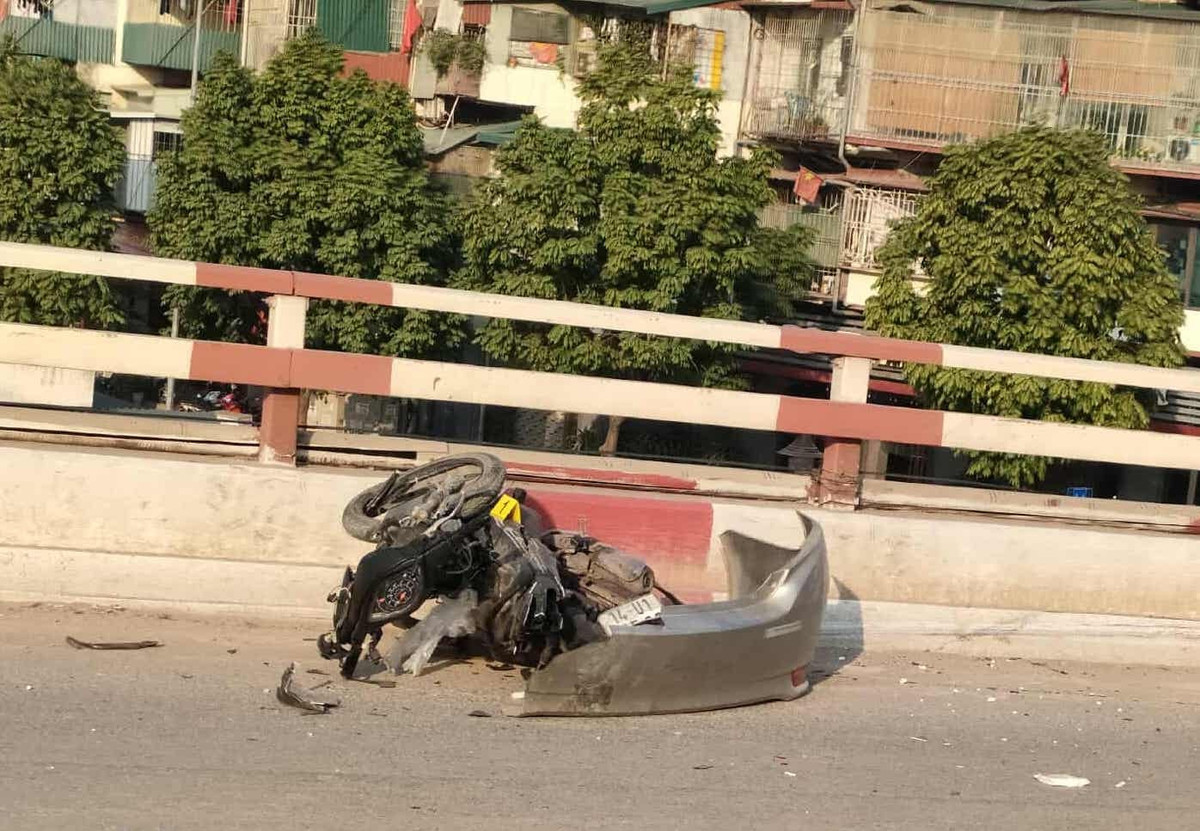 Tại hiện trường, ô tô con bị hư hỏng nặng phần đầu, bung túi khí, nổ lốp sau; nhiều xe máy bị hư hỏng, mảnh vỡ văng khắp mặt đường. Người đàn ông điều khiển xe máy bị thương và được đưa đi cấp cứu.
