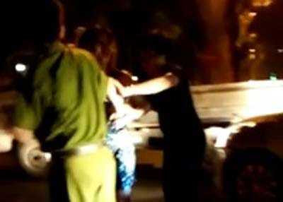 | Người đàn bà trung tuổi điên cuồng chửi, đánh, đập dép vào mặt cảnh sát giữa trung tâm Hà Nội. |