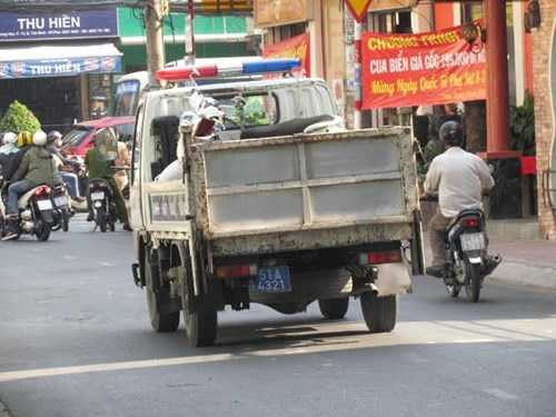 | Người dân bất bình truy đuổi và đã đập vỡ kính sau của xe. |