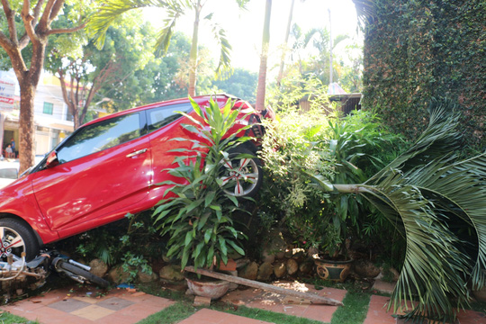 Sau đó, chiếc ô tô tiếp tục tông vào hai chiếc xe máy dựng bên đường và chỉ chịu dừng lại khi tông vào một bụi cây.