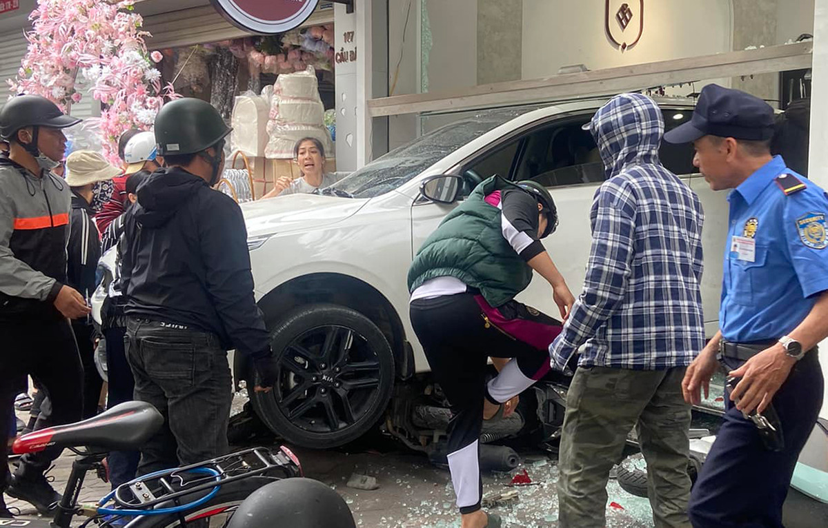 Ô tô sau đó tiếp tục đâm trúng ông L.V.H (SN 1960, trú phường Lam Sơn, quận Lê Chân, Hải Phòng) là bảo vệ của cửa hàng trang sức ở 107 Cầu Đất. Thời điểm này, ông H. đang ngồi ở cửa.