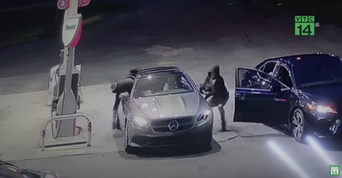 Một nữ tài xế xe Mercedes đang đổ xăng thì bất ngờ bị nhóm cướp tiếp cận, tuy nhiên hành động sau đó của cô đã khiến đối tượng phải bỏ chạy thoát thân.