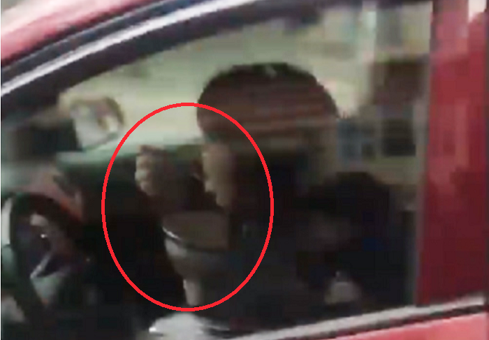 Sau đó, nữ tài xế ô tô phát hiện có người quay từ phía ngoài nên lập tức dùng một tay cầm lấy vô lăng và đạp ga phóng đi.