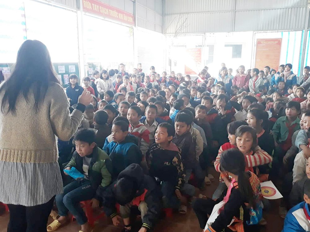Trẻ em Phong Thổ, Lai Châu chăm chú lắng nghe TS Hương giảng dạy kiến thức về giới tính.