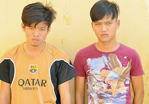 | Thiện và Tâm tại cơ quan điều tra. Ảnh: Thanh Phong |