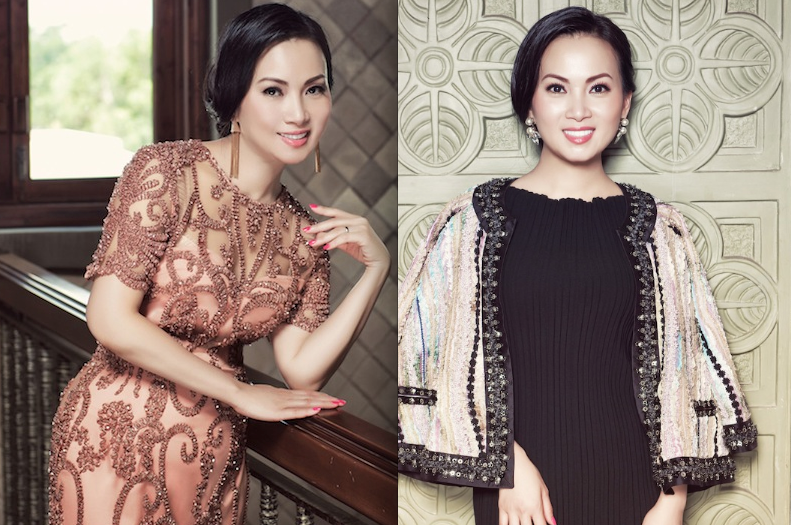 Nữ ca sỹ khá tinh tế khi không quên chăm chút cho những đôi hoa tai đính đá để đồng bộ với từng trang phục, mốt tóc búi cao mái phồng, búi thấp giản đơn những tưởng rất kén người lại là lựa chọn hoàn hảo giúp tôn lên gương mặt thanh thoát, tươi trẻ của bà mẹ hai con.