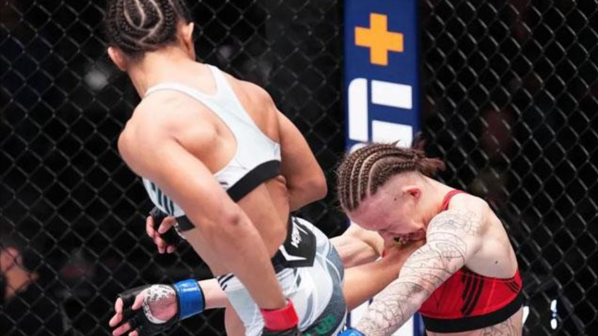 Tại sự kiện UFC Fight Night 215 (Mỹ) nữ võ sĩ người Brazil - Natalia Silva xoay người tung cú đá cực hiểm gục đối thủ.