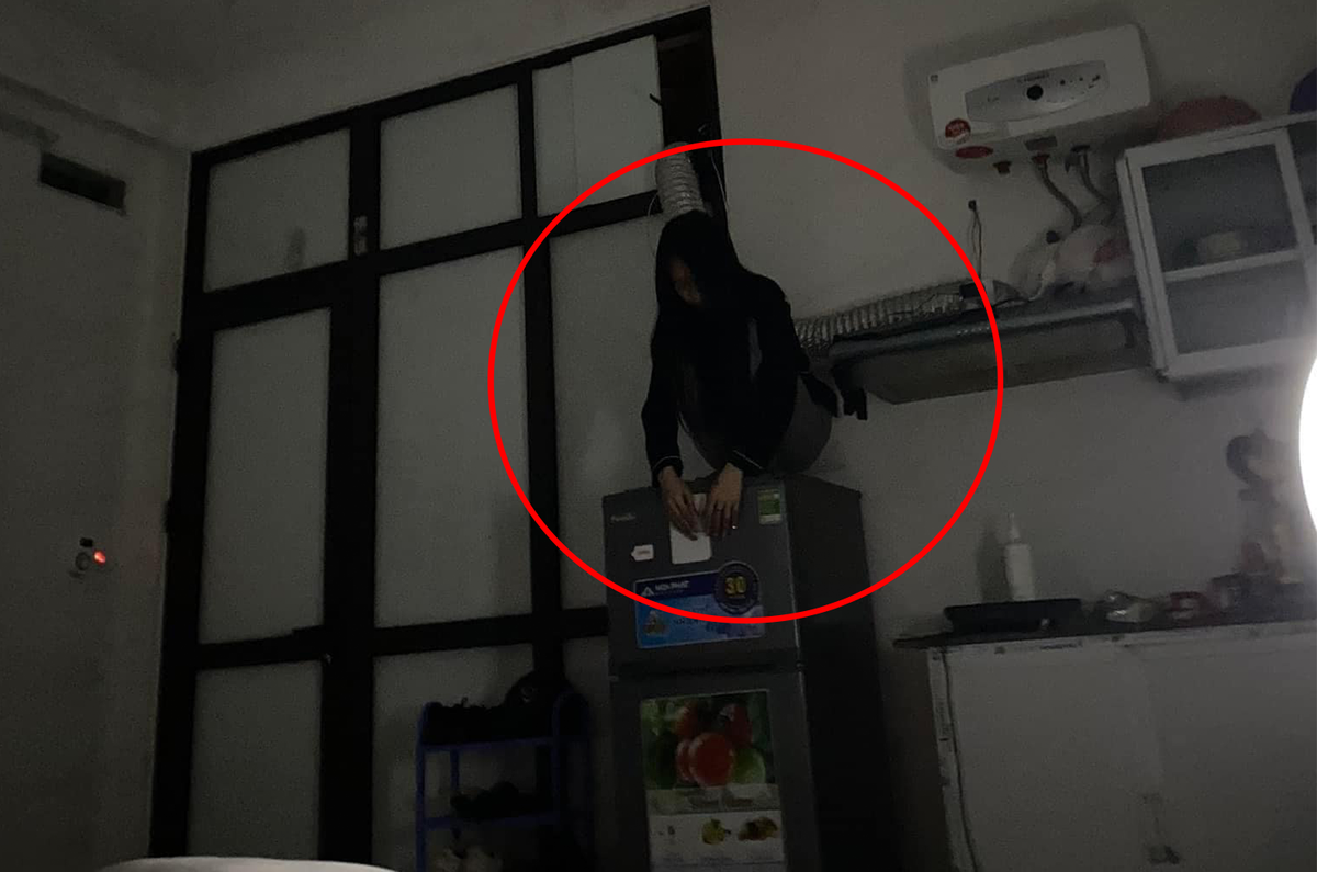 Theo đó, trong bức ảnh được đăng tải, một bóng người tóc xõa dài rũ rượi, ngồi xổm trên nóc tủ lạnh với hai tay buông thõng kỳ lạ trong căn phòng tối đã khiến cô gái không khỏi giật mình.