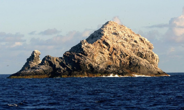 Cặp mỏm đá Gardner, phần duy nhất nhô lên khỏi mặt biển của núi lửa Puhahonu. (Ảnh: NOAA)