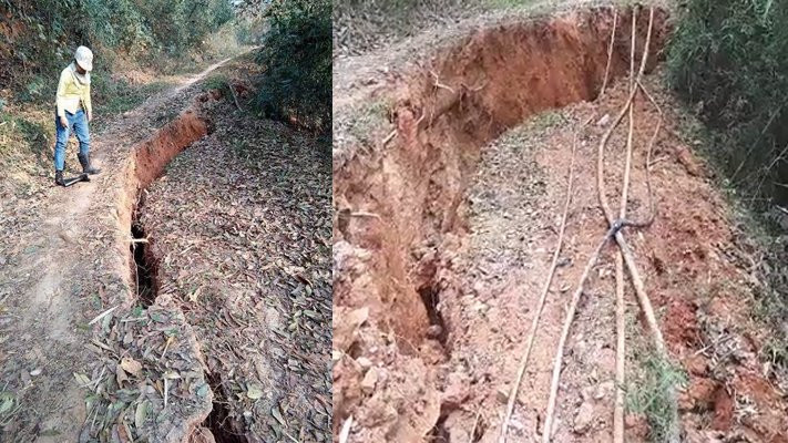 Núi nứt có nơi rộng tới 1m, sâu 5m.