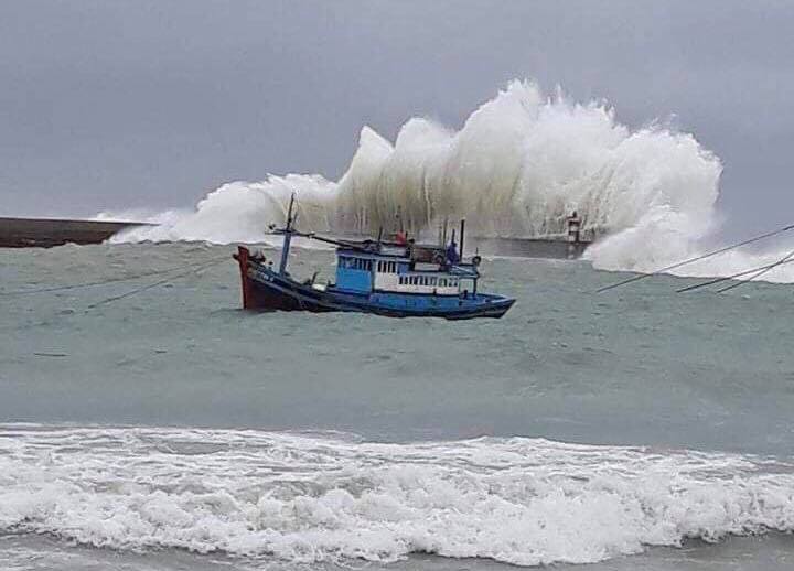 Cùng ngày, tại huyện đảo Phú Quý tiếp tục có mưa lớn kèm theo gió giật cấp 6, cấp 7. Ven bờ đã xuất hiện nhiều đợt sóng rất lớn và dâng cao 4-5m. Sóng đập vào các bờ kè tung bọt trắng xóa.