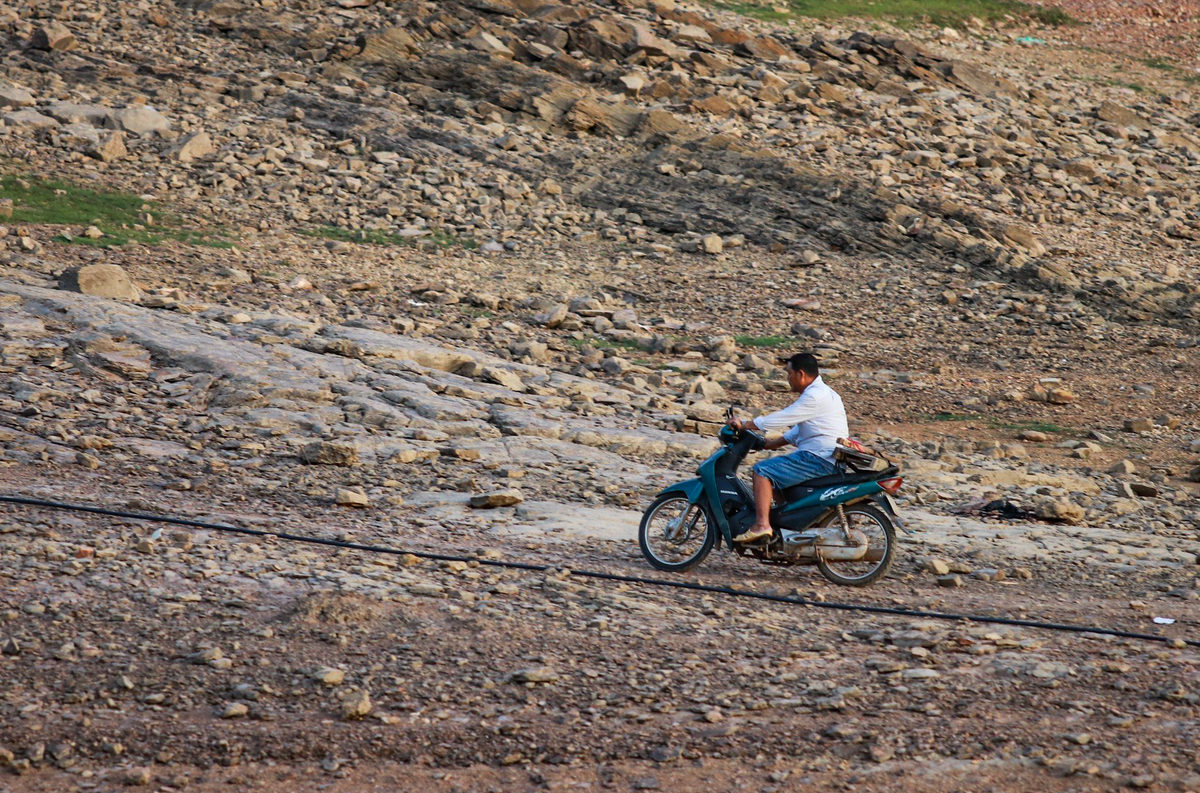 Do hạn hán kéo dài và lượng mưa rất thấp từ đầu năm, hồ Kẻ Gỗ hiện đang trong tình trạng cạn kiệt nước.