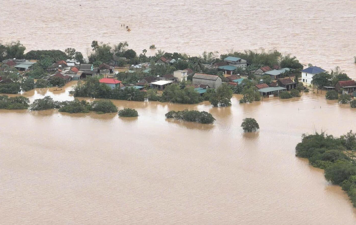 Nhiều cơ sở giáo dục, trụ sở cơ quan nhà nước ở huyện Lệ Thuỷ lũ nhấn chìm gần hết tầng 1. (Ảnh: CTV)