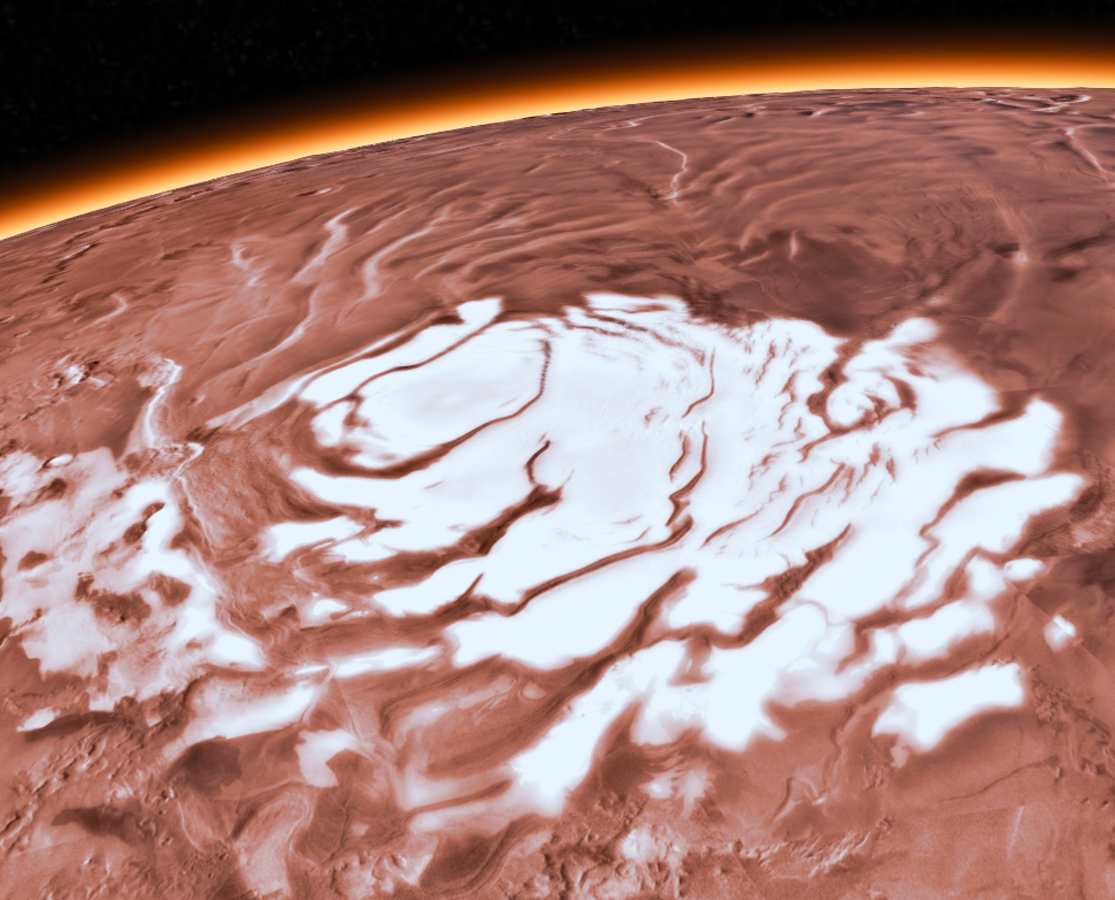 Tàu quỹ đạo của Cơ quan Vũ trụ Châu Âu đã phát hiện ra bằng chứng rõ ràng về một khối lượng băng lớn tập trung quanh xích đạo sao Hỏa. (Ảnh: Cơ quan Vũ trụ Châu Âu)