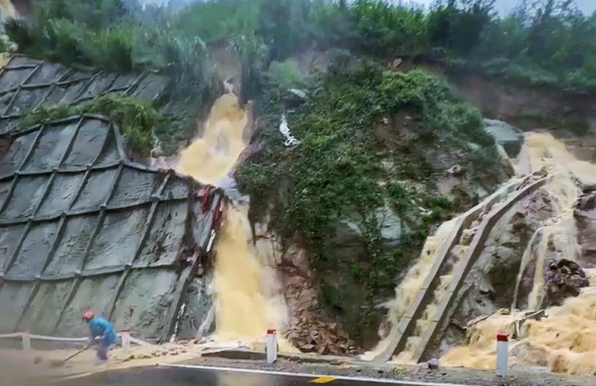 "Khu vực đèo An Khê hiện đang có mưa lớn, nước tập trung về sườn taluy tạo dòng chảy xiết đổ xuống lòng đường gây nguy hiểm, gia tăng nguy cơ sạt lở, mất an toàn giao thông", ông Nguyễn Ngọc Nam thông tin